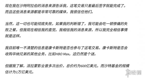 卡利吉里自称早在10月16日就已率先披露这一潜在收购,并指出近期网络上流传的相关消息均源自他的爆料。他强调,自己在沙特境内拥有“可靠”的媒体联系人,对方明确表示交易已接近完成。尽管他承认在康卡斯特是否参与部分环节、华纳业务会否拆分等方面仍存不确定性,但他坚信PIF的意图是全面收购,且其财力远超曾出价约600亿美元的派拉蒙等竞争对手。