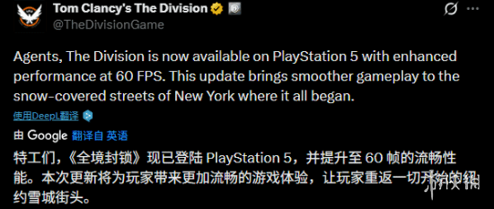 育碧近日正式宣布,为2016年发售的开放世界大作《 汤姆克兰西:全境封锁 》推出了 免费PS5强化补丁。安装后,在PS5上游玩本作将支持 60帧的流畅体验,画质与运行表现显著提升。