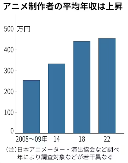 动画制作涉及大量人力,过去业内常被批评为“靠热情压榨人力”,薪资低且工作强度大。但近年来动画从业人员的平均年收入确实有所提升,劳动环境也在逐步改善。从这一角度看,制作费用上涨其实是正向发展。然而同样地,当作品无法通过动画本身收回成本时,这种高投入也意味着高风险、高回报的赌注。