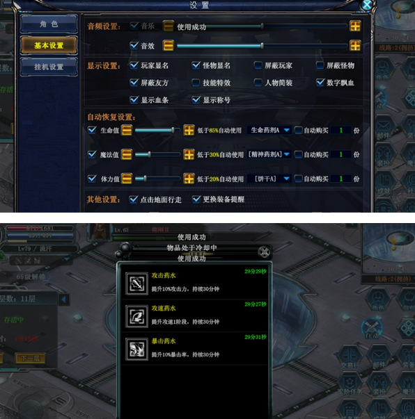 首先需要注意的点是虚幻空间内的怪物伤害很高,因此需要我们把设置里面的自动回复设置成生命值低于85%时就自动回血,确保我们能扛得住怪物的伤害。同时可以吃上攻击、攻速、暴击药水,增加自身的输出能力,如果在4分钟的时候发现已经打掉怪物20%血量以上,那么肯定是能稳定通过这一层的啊,可通过这一点判断自身实力避免浪费时间。