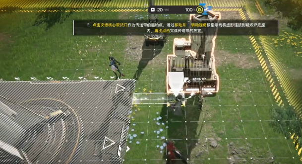 等到第1条差不多时,然后就可以点一下取货口,目前的起始点接着就可以移动位置,然后去转视觉角度。跟着屏幕上的指示线走,就可以把虚影全部都接到精炼炉的底部,这一点还是不需要有耐心的,角度要是偏了,那很有可能就会接不上,还是需要选择多尝试。等两条传送带全部接好之后,一条通精炼炉,一条就可以直接回协议中心。这才算是把完整的产线架子直接搭起来,这个时候别忘记还需要解除放置模式,看你到底顺手哪一个。