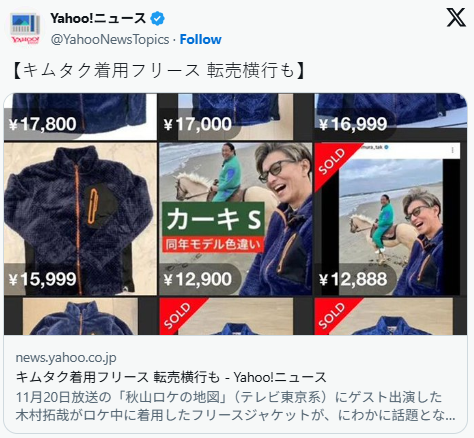 当然,即使穿上同款也不会变成木村拓哉,但这一事件足以证明,“木村拓哉带货”的现象在日本至今仍有着不可抵挡的巨大影响力。