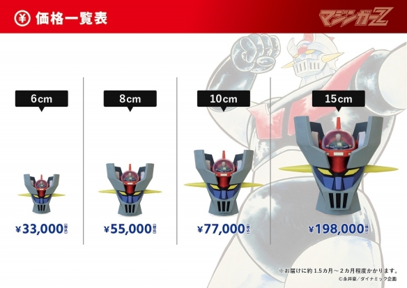 模型将推出 6cm~15cm 四种不同的尺寸,建议售价则是 33,000 起至 198,000日元。作为完全客制化商品,从 3D 扫描后到制作完成约需费时 1.5~2 个月左右。