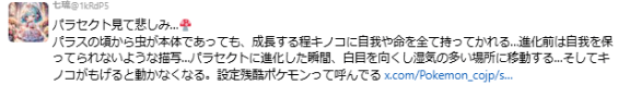 尽管派拉斯特的图鉴设定早已说明:“本体是背上的蘑菇,下方的虫子几乎已死亡。一旦蘑菇脱落,它就再也不会动。”也有描述指出:“虫子的精华被持续吸取,思考的主体似乎已不是虫子,而是蘑菇本身。”