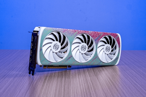 为了搭配时尚动态的主基调,显卡还在顶部集成了 ARGB 幻彩信仰灯,支持 1600 万色调节和多种动态模式,搭配上彩色渐变的机身印花,为玩家带来炫酷多彩的视觉享受。