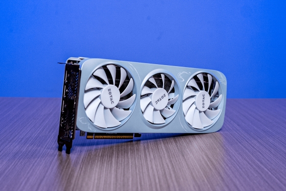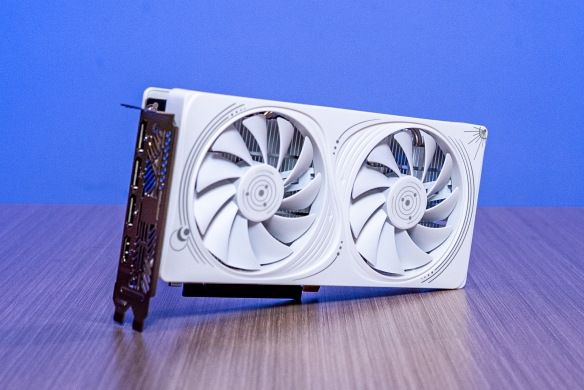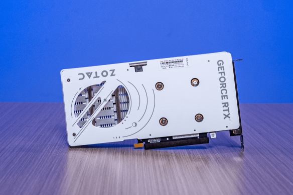 索泰 GEFORCE RTX 5050 8GB 月白 OC机身以简约为核心,风扇特意采用两大一小、两正一反的布局,通过优化空气流通路径提升散热表现。背板选用金属材质,搭配镂空雕花工艺,银色的 GEFORCE RTX 与 ZOTAC logo 醒目亮眼,既丰富了视觉层次、增添活泼感,又能辅助散热。纯白机身还具备极强的装机适配性,尤其契合白色海景房机箱,实测装机呈现出的高颜值效果,能充分满足颜值党玩家的需求。