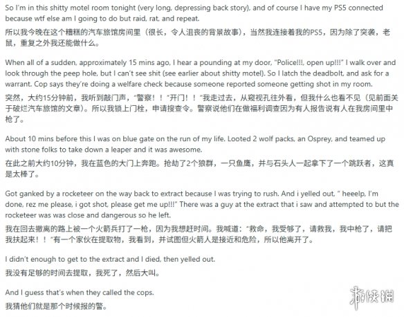 Reddit用户YoMopho在游戏社区分享这段经历,经外媒向警方核实,当时确有警员接报前往当地汽车旅馆进行安全检查,时间地点均与玩家描述吻合。