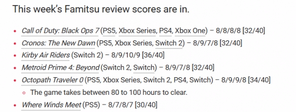 日本知名游戏媒体Fami通公布了最新一周的游戏评分,本期共六款游戏参评,涵盖动作、冒险、角色扮演等类型,其中任天堂Switch 2独占作品《星之卡比:天空骑士》以36分的高分成为唯一进入白金殿堂(35分以上)的游戏,展现出强劲的竞争力。