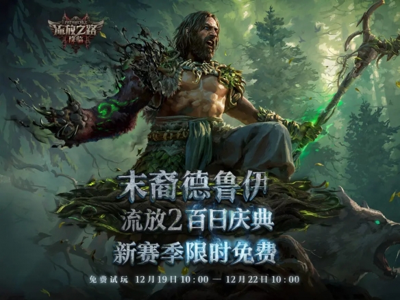为庆祝《流放之路2》新赛季“末裔德鲁伊”上线,所有平台(独立客户端/Steam/Epic/Xbox X|S/PS5)将开启三天免费畅玩,活动期间参与“瓦尔的宿命”联盟,更可领取专属限定外观奖励!