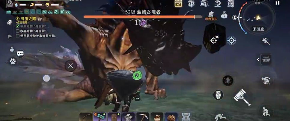 这里在打蓝鳍吞噬者的时候,小编建议大家使用近战武器锤子,锤子对于boss有着很高的伤害,然后在把驯化的宠物召唤出来和自己协同作战能够加快击杀的速度。