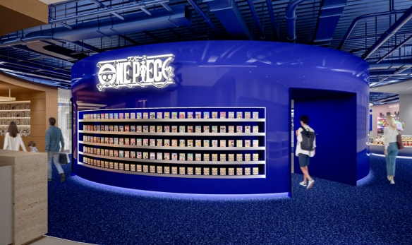 店铺整体楼层面积达1,185平方公尺,以蓝色为主色调,设计灵感源自路飞一行人历经的各个岛屿。空间划分为多个主题区域,让顾客一步入店内就仿佛置身《ONE PIECE》世界。
