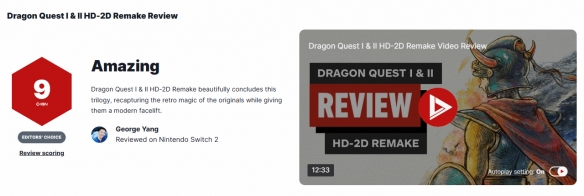 《 勇者斗恶龙1&2:HD-2D重制版 (DRAGON QUEST I & II HD-2D Remake)》媒体口碑现已正式解禁,IGN打出了9分的成绩。