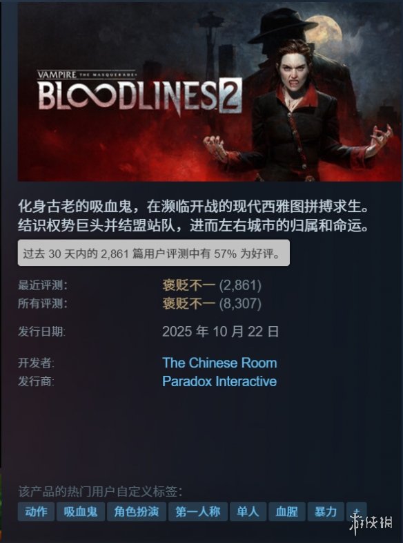 发售仅一个多月,《吸血鬼:避世血族2》便遭遇口碑崩塌。游戏惨遭媒体与系列粉丝一致差评,多数玩家打出低分,痛批其节奏堪称灾难、整体表现一团糟,彻底辜负了玩家十余年的苦苦期待。