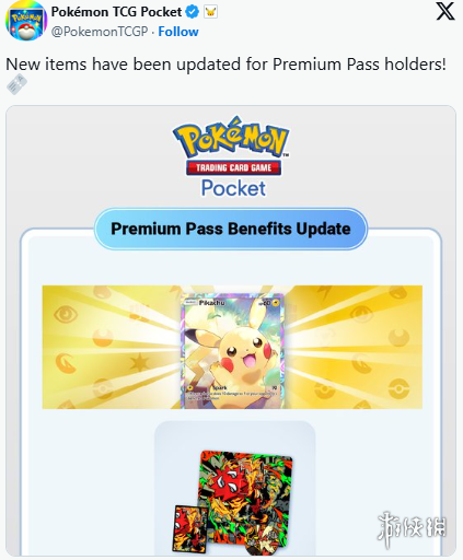 这张全新促销卡采用全画幅设计,皮卡丘的"电击火花"招式可对后备区宝可梦造成额外伤害。玩家只需订阅高级通行证即可获取,也可消耗一张高级票券直接在卡包中抽取。本次更新还同步推出了以Mega火焰鸡ex为主题的卡套、场地艺术图与对战硬币等"超级进化"主题装饰。