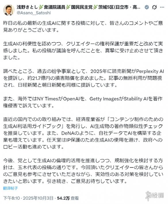 在游戏行业内部,支持监管的声音主张为AI的应用设立明确规则。例如,《任天堂明星大乱斗》和《星之卡比》系列的创作者樱井政博认为,人工智能确实有助于缓解游戏开发中的繁重任务,但其定位应是提升生产效率的工具,而非取代人类的创造力。