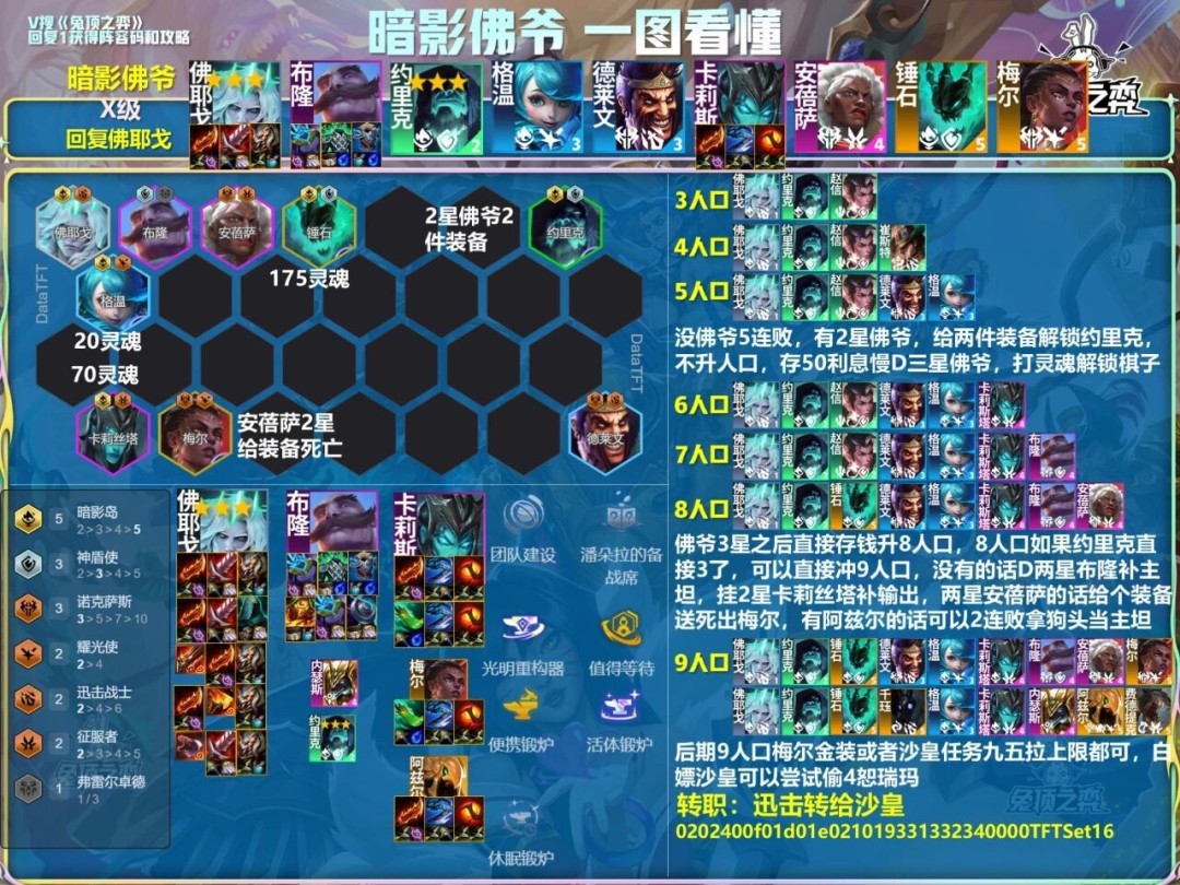 云顶之弈 S16版本 英雄联盟 传奇主题,在新赛季会增加很多新的羁绊和棋子,还有不少老羁绊,老英雄的回归,那么有不少小伙伴好奇新赛季有什么强力阵容,下面就给大家带来s16暗影佛爷阵容推荐。