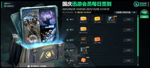 另外,迅游加速器在国庆期间也有活动,签到一天即可获得【测试资格】,后面签到的奖励也会越来越丰富!