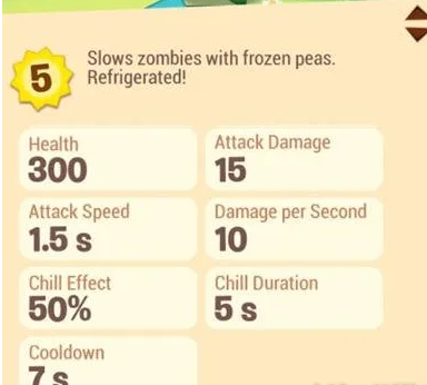 寒冰射手的核心能力依然和以前的作品是一样的。在发射冰豌豆之后就可以攻击正前方的僵尸,而且还可以给目标挂一个减速的效果。这一个减速的效果,在实际作战的过程中就可以帮助防线去争取更多的时间。不过对比之前的作品,这一代的属性也就更加的明确。在种植时成本比较亲民,只要5点阳光,这就属于一开始可以随便种植的植物根本就不需要担心阳光不够实用。生存能力中规中矩,生命值只有300点,并不能够抵抗伤害,但是应付一开始的僵尸还是绰绰有余的。