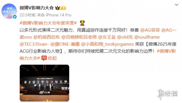 在昨天的2025微博V影响力大会上,知名游戏制作人小高和刚荣获“微博2025年度ACG行业影响力人物”成为今年唯一获此奖项的外国人,也是首次获得该奖项的日本游戏创作者。