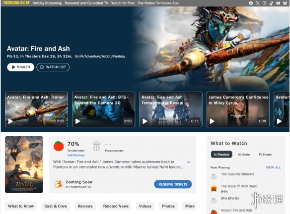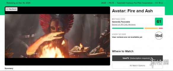 《阿凡达》三部曲的最终章《阿凡达3:火与灰》媒体评分正式解禁,目前已成为该系列口碑最低的一部。在主要评分网站上,影片在烂番茄上基于146条评论获得了70% 的新鲜度;在Metacritic上则基于44条评论,取得了61分(满分100)的均分。
