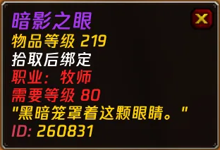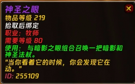 时光服中,牧师玩家将会获得两把专属武器。和原版60级史诗任务不同的是,管理者埃克索图斯会掉落新版本的【神圣之眼】。这个道具可以直接和世界Boss卡扎克掉落的【暗影之眼】进行组合,然后直接获得史诗杖。