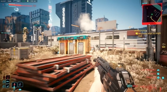 本次实机画面在掌机连接电源的状态下录制。为了极致流畅的体验,我们将画面预设调至“低”,并开启了FSR 3.1帧生成技术;同时,FSR 3.0设置为“质量模式”,在保障帧率的同时,竭力捕捉夜之城的每一处细节。此外,我们关闭了光线追踪,并将人群密度调低,一切只为一个目标:在这座暗黑未来的街头上,为您呈现一场无拖影、无卡顿的视觉冒险。