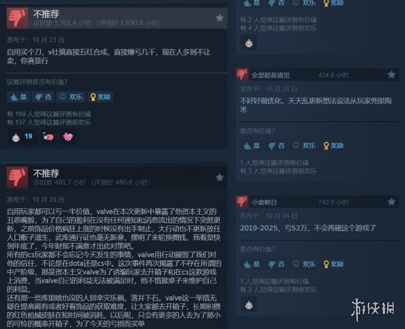 从玩家反馈来看,不少玩家认为Valve此次更新,损害了那些曾以较高成本购买饰品并“自用”的玩家利益。同时,部分评论指出,这次改动伤害了许多真正热爱这款游戏的玩家,呼吁不想被割韭菜的就不要碰这个游戏。