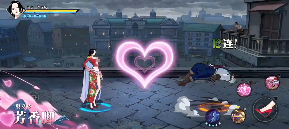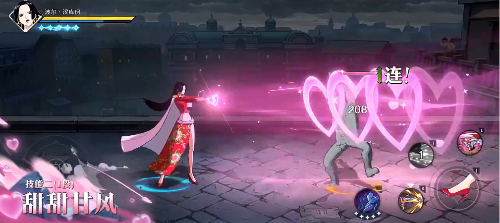 一技能名为“飞燕踢”,支持点按与长按两种释放模式。点按时分为三段:首段为直线飞踹,二段为斜上方向旋转踢击,三段为空中高弹腿下劈,具备抓取判定;长按则激活果实能力融合机制,消耗额外精力值,全面提升各段攻击性能。