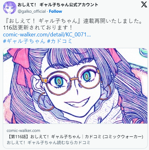 此次新章节上线后,X平台迅速涌入粉丝留言,如“没想到辣妹子还能回归!”“连载重启太开心了!”等。