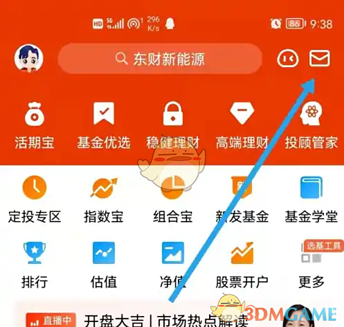 1、打开【天天基金】,点击右上角的小信封