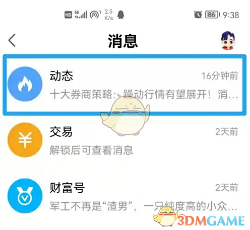 2、点击打开【动态】消息