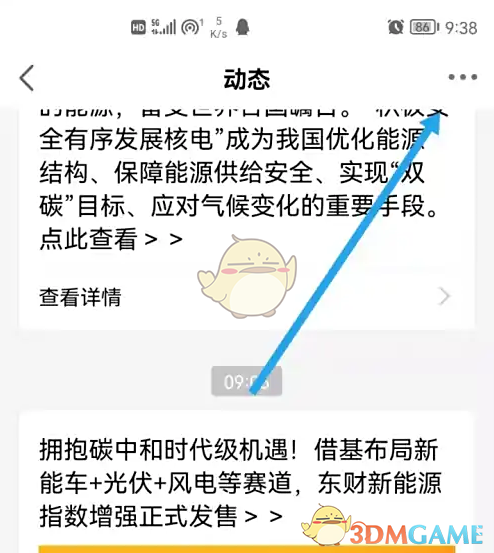 3、在动态消息界面,点击右上角的三个点