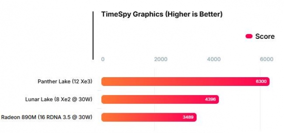 LaptopReview测试显示,该型号在3DMark Time Spy中获6300分(得益于12个Xe3“Celestial”核心集显),较Lunar Lake的Arc 140V提升45%-50%,属大幅升级。