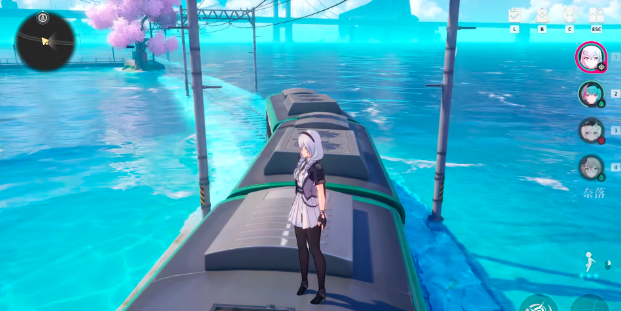 在水面列车周围有很多樱花树,流畅的车身设计、波光粼粼的水面、飘落的樱花为玩家们带来别样的浪漫体验,玩家要想乘坐,可以在地图上的列车标志附近进行传送,可以直接抵达列车的各个站点,而水面列车也成为了不少玩家们的拍照打卡圣地。