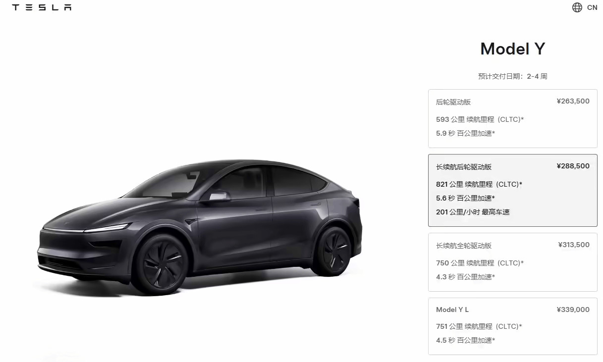 特斯拉ModelY续航版上市!28.85万元起 续航超800公里