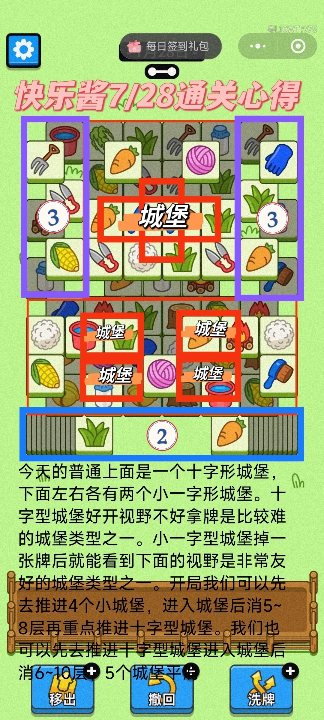 复活/移出:我一般是先使用复活道具,因为复活之后只有三个卡槽,前期牌还比较多的时候,三个卡槽也可以继续走下去,后期牌少卡槽空空的操作空间大