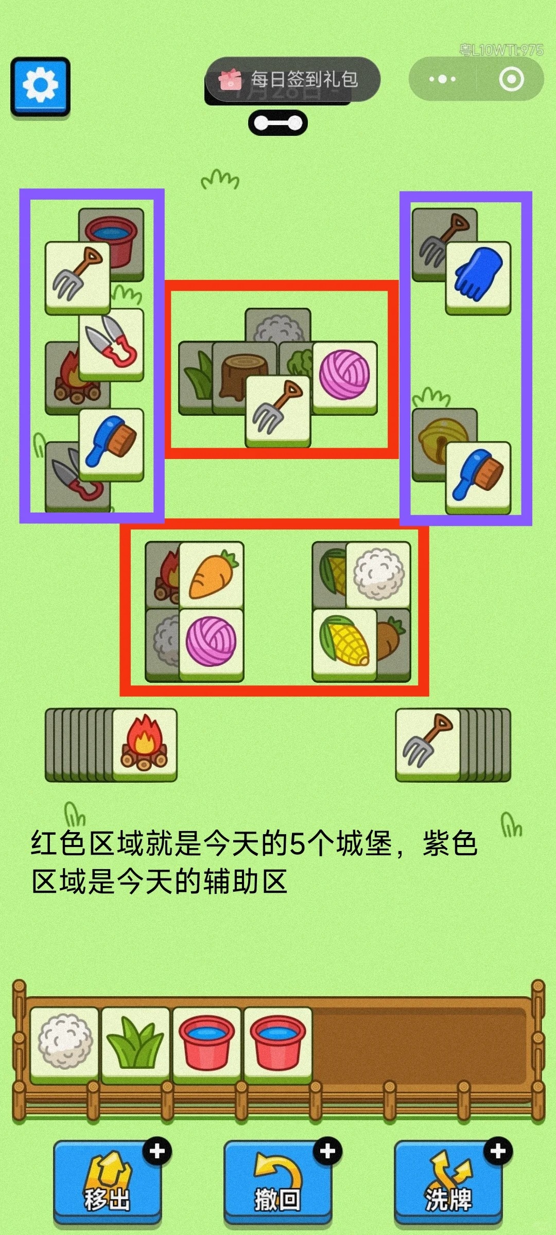 中心区可以走卡槽不够的时候,借辅助区的牌去清卡槽