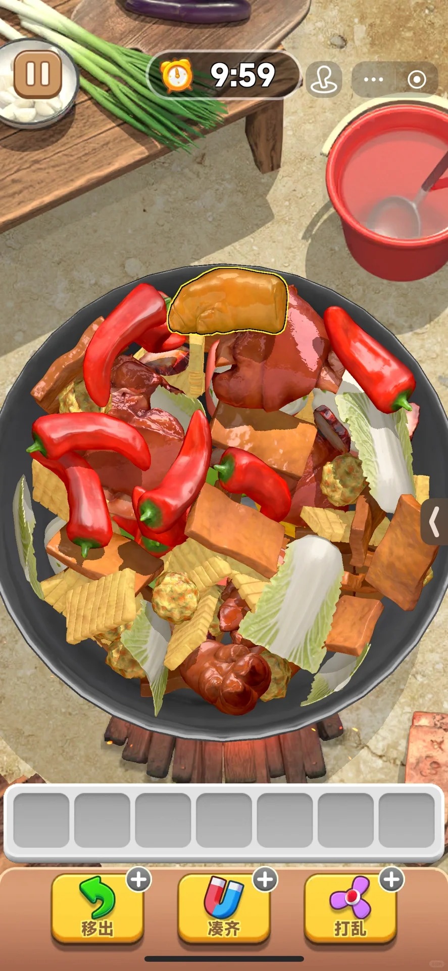 3.开局看到什么抓什么,保证能抓得都抓走了,有大的物品可以颠一颠锅,避免遮挡视线,这样能最大限度节约时间。