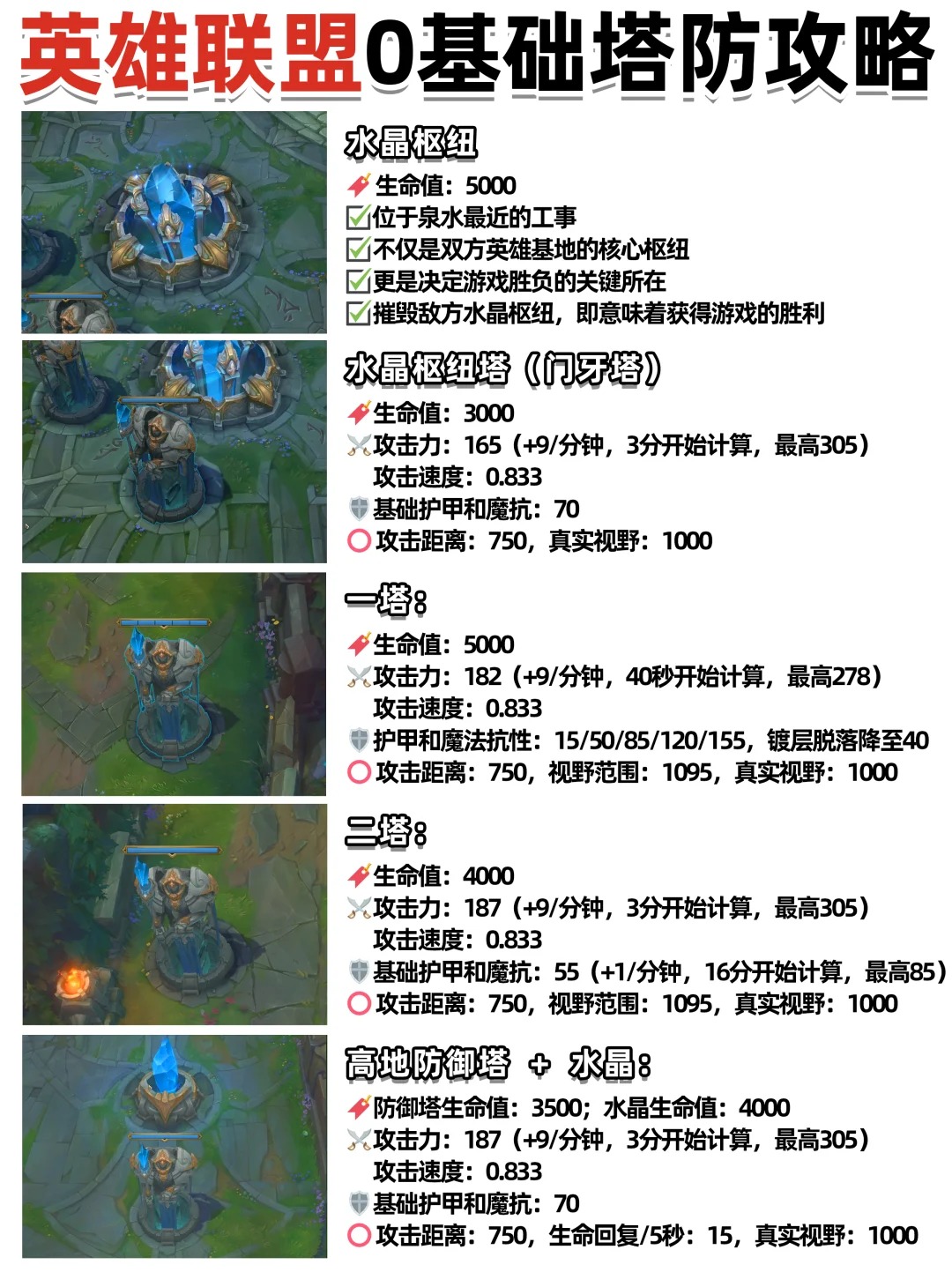 虽然防御塔长的样子都是一样,但是他们的属性可并不相同,就像1塔别和高地塔相提并论一样(具体参考图3)