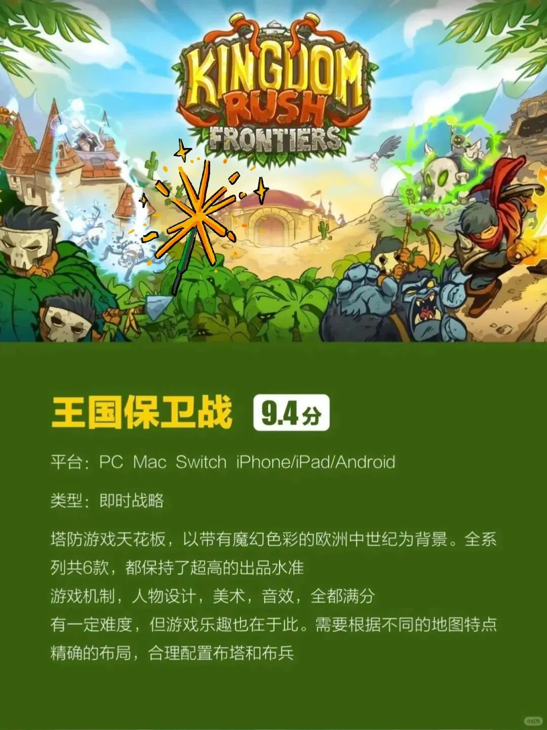 《王国保卫战》🎮:这堪称策略塔防游戏中的“老大哥”。防御塔种类丰富多样,关卡设计也超有创意,组合出了一个充满魔法与冒险的奇幻战场。每一次排兵布阵,都像在下一盘高难度棋局,极其烧脑。