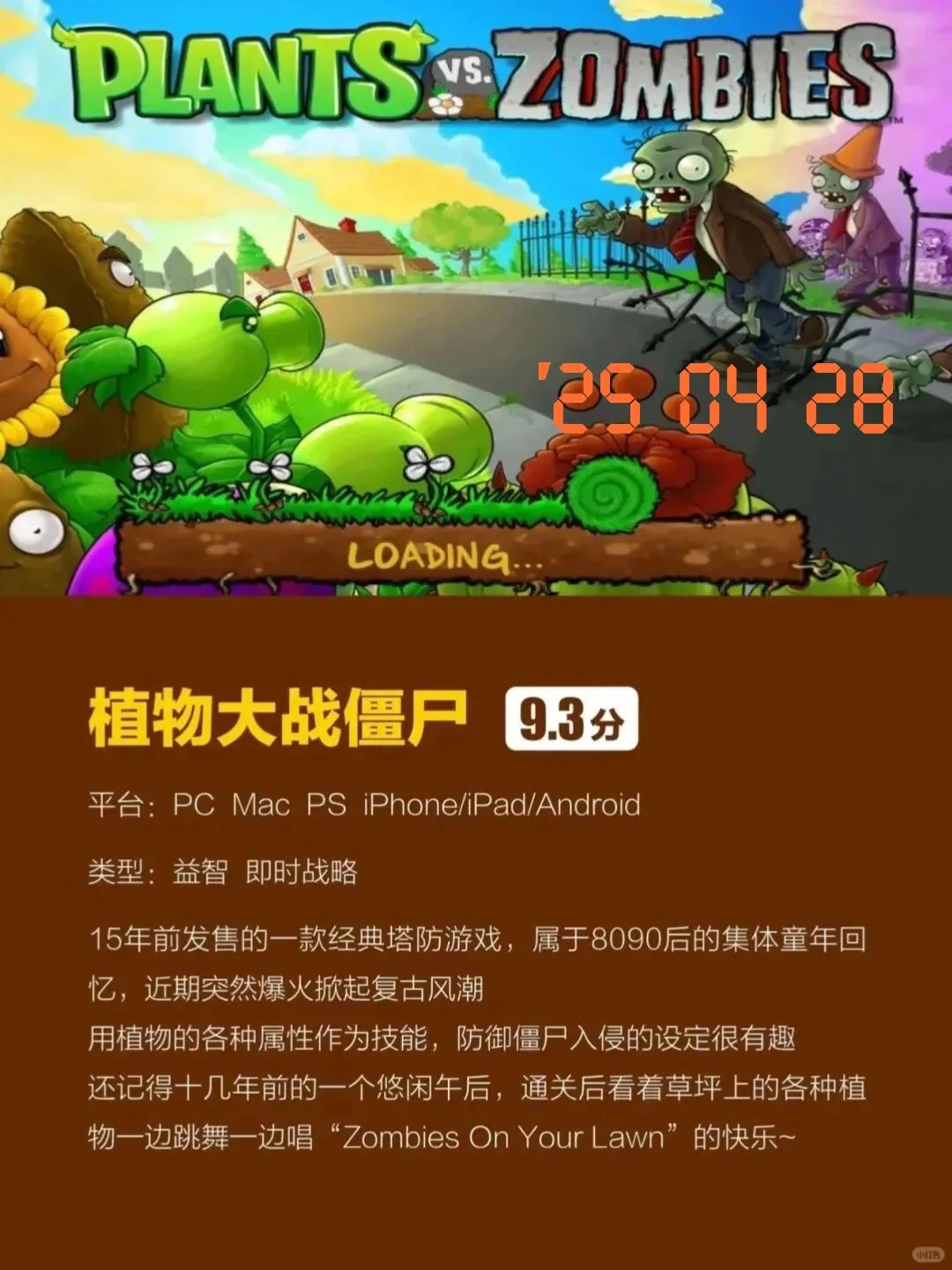 《植物大战僵尸》🌱🧟:凭借萌趣画风和创新玩法,红遍了全球。性格各异的植物们,有着不同的技能,前赴后继地抵挡僵尸的进攻,玩起来欢乐满满,趣味性十足。