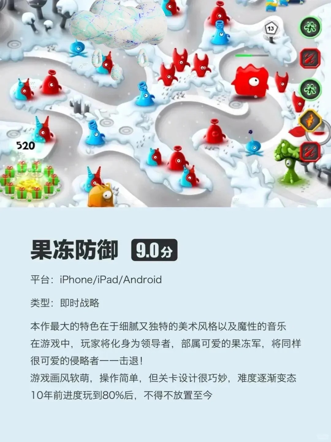 《果冻防御》🍮:游戏里都是软萌的果冻造型角色,防御玩法融合了清新画风,在塔防游戏里开辟出了一条独特的赛道,给玩家带来了前所未有的游戏体验。