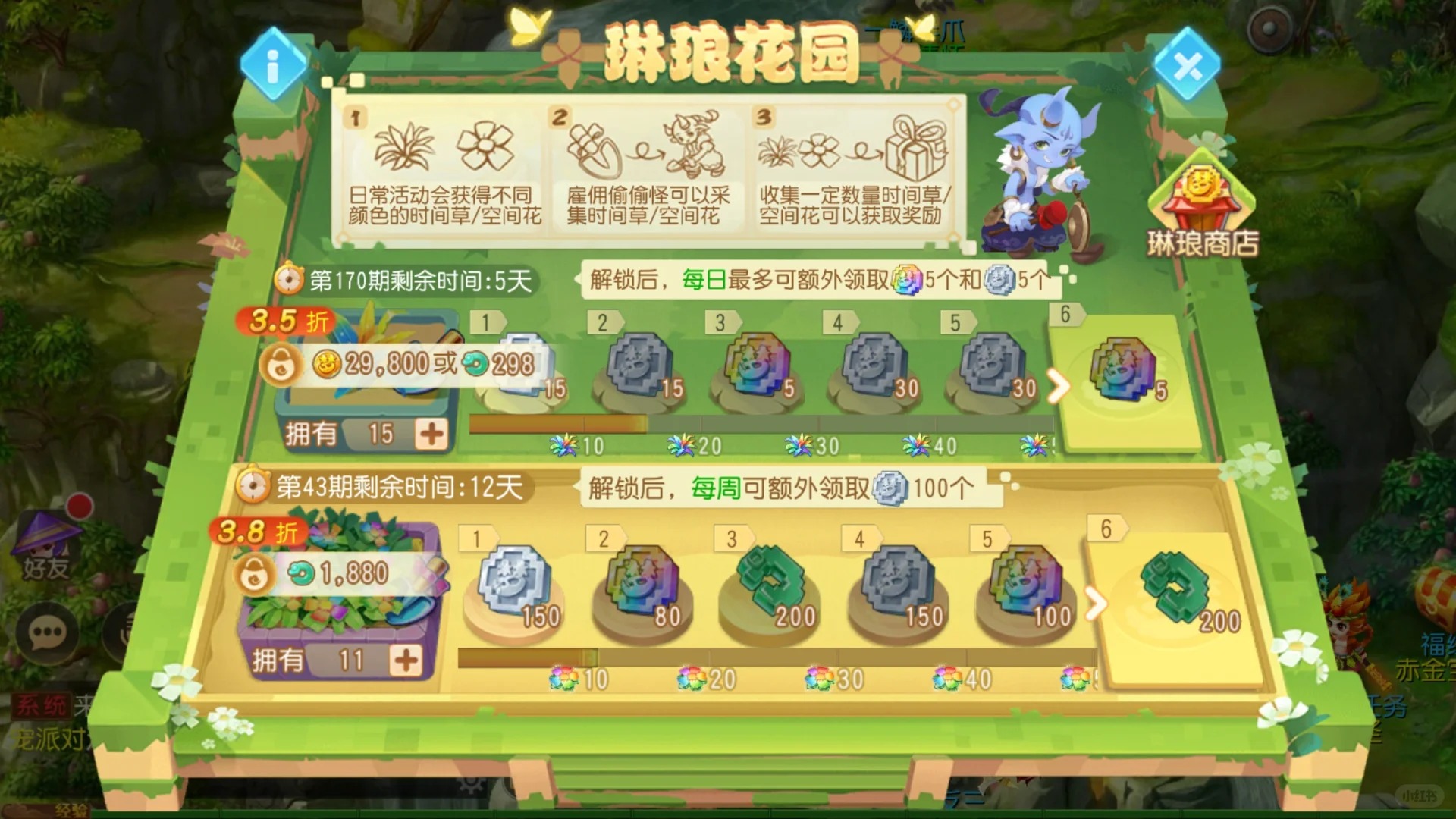 📈开启“时间草”需 29,800金币/周(约30大洋),完成200朵花的收集任务后,可兑换 500万~800万银币(相当于1万金币≈267万银币)。