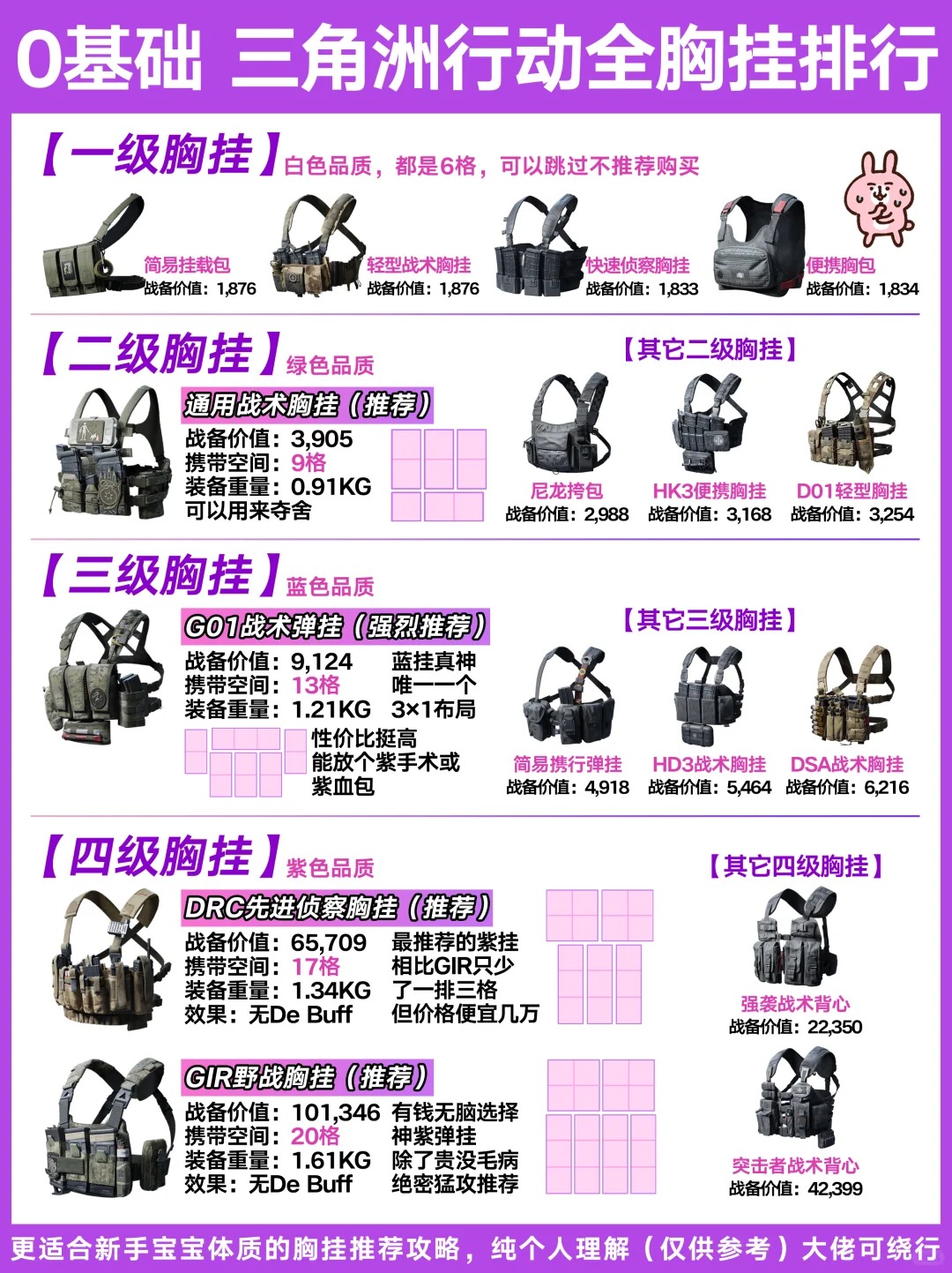 胸挂的格子排列方式(比如是否有1*3的长条格放医疗包,或有2*2的方格放特定物品)比单纯的总格子数有时更重要,选择时可考虑你常带的物品体积