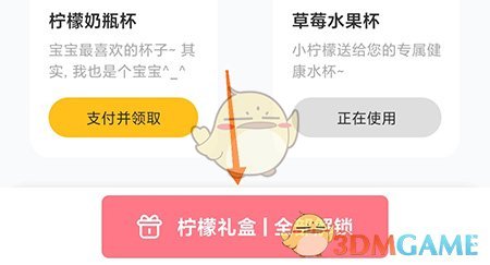 2、进入水杯的样式页面,可以看到各种类型的水杯,不过需要解锁柠檬礼盒才能使用,点击全部解锁按钮;