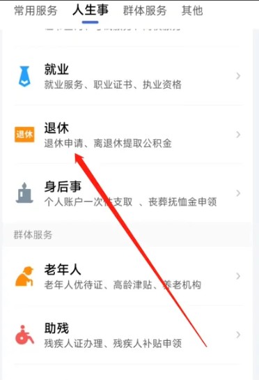 选择【退休】选项点击跳转进入进行下一步操作;