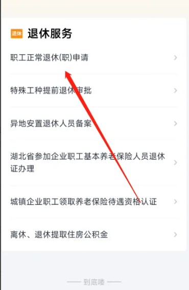 进入到界面点击【职工正常退休申请】即可