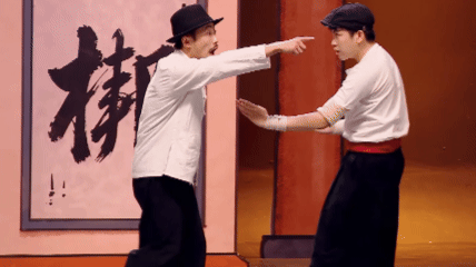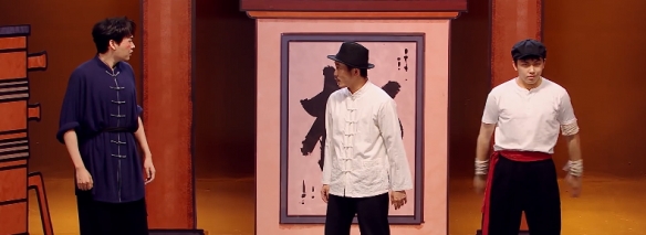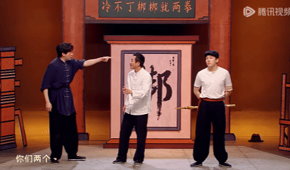 作品的风格依旧延续了《技能五子棋》的荒诞、无厘头,层次设计上也比之前更加流畅,结构也更加完整。但是,当“梆梆两拳”的开场映入眼帘时,难免会的有些失望——无论是舞台的布置,还是节目的开场,都像是技能五子棋的复制品。很难不让人怀疑是张兴朝在创作上遇到了瓶颈,不得不借助“炒冷饭”来填充新作品的骨架。
