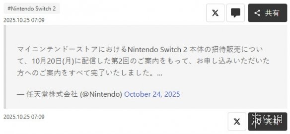 任天堂在Switch 2发售初期便推出了官方申购政策,玩家需提交申请,再经由资格审核与抽签决定购买资格。官方此前已明确,今年内此类申购仅开放三次。若三次均未中签,玩家则需自行寻找其他购买途径。