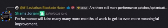 在游戏官方Discord社群中,Arrowhead首席执行官乔贾尼回应玩家关于性能补丁的询问时给出了令人失望的答案:"性能优化仍需投入数月时间,才能实现更有实质性的改进。"那些期待游戏性能在短期内显著提升的玩家,恐怕还要等待相当长的时间。